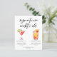 Este sofisticado menú de cócteles de autor presenta una simple tipografía negra por encima de 2 de sus bebidas favoritas y sus ingredientes para su bar boda costero. Un dibujo cosmopolita de moda y el Sunrise Tequila le dan un toque divertido a su menú del bar. Con los nombres de la pareja y la fecha de recepción.