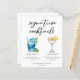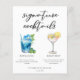 Este menú de cócteles de la costa de moda presenta una tipografía negra sencilla sobre 2 bebidas junto al mar y sus ingredientes para su bar de bodas en la playa. Un lindo dibujo de Blue Lagoon y Lemon Drop martini le dan un toque fresco a su menú de bar. Con los nombres de la pareja y la fecha de recepción.