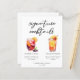 Esta refrescante hoja de menú de cócteles de la tarde destaca por su sencilla tipografía negra sobre 2 bebidas y sus ingredientes para su bar boda. En verano, un bonito cuadro de Sangria y Tequila con salida del sol le dan un toque fresco a su carta de bar. Con los nombres de la pareja y la fecha de recepción.
