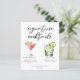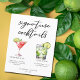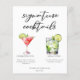 Este sofisticado menú de cócteles de autor presenta una sencilla tipografía negra sobre 2 de sus bebidas favoritas y sus ingredientes para su bar boda costero. Un moda Cosmopolita y un dibujo de ginebra y tonic añaden un toque divertido a su menú de bar. Con los nombres de la pareja y la fecha de recepción.