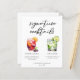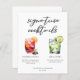 Esta hoja de menú de cócteles con la firma de la moda presenta una tipografía negra simple sobre 2 bebidas y sus ingredientes para su bar boda. En verano, un bonito dibujo de Sangria, Gin y Tonic le dan un toque fresco a su carta de bar. Con los nombres de la pareja y la fecha de recepción.