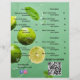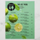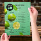 Brillante, fresco y llamativo, este folleto de menú para llevar en Verde Menta Lima está diseñado para llamar la atención y aumentar tus pedidos de comida para llevar y entrega a domicilio. La vibrante paleta de colores le da a tu restaurante un aspecto moderno y refrescante, manteniendo las cosas limpias y fáciles de leer.