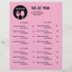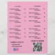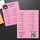 Este llamativo folleto de menú de restaurante para llevar presenta un vibrante fondo rosa, creando un ambiente fresco y artístico que llama la atención al instante. La suave fuente negra combina con el rosa calmante evocando sofisticación y calidez, perfecto para restaurantes modernos o cafeterías acogedoras.