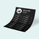 Crea una impresión duradera con este elegante y moderno volante de menú para llevar en negro y blanco. Diseñado para la comodidad y el estilo, este volante es perfecto para restaurantes que ofrecen entrega, comida para llevar o servicio de recogida en el coche.