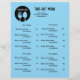 Este llamativo folleto de menú de restaurante para llevar presenta un vibrante fondo azul, creando un ambiente fresco y artístico que atrae instantáneamente la atención. La suave fuente negra combina con el azul calmante evocando sofisticación y calidez, perfecto para restaurantes modernos o cafeterías acogedoras.