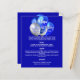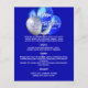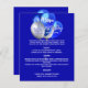 Un fondo azul real. Texto blanco. Decorado con globos azules y plateados. Front: Personalice y agregue su nombre, fecha y menú. 1 hoja = 1 borde impreso del menú a borde.
