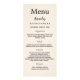 Carta de menú de la fiesta de cumpleaños. Personalice y agregue un nombre, edad, fecha y el menú. Fondo beige. Letras de color negro. Atrás: agrega una foto del chica de cumpleaños, datos divertidos y nombres.