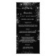 Carta de menú de la fiesta de cumpleaños. Personalice y agregue un nombre, edad, fecha y el menú. Un fondo negro de moda, decorado con un polvo falso purpurina. Letras de color blanco. Atrás: agrega una foto del chica de cumpleaños, datos divertidos y nombres.