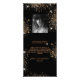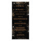 Carta de menú de la fiesta de cumpleaños. Personalice y agregue un nombre, edad, fecha y el menú. Un fondo negro de moda, decorado con un polvo falso purpurina. Letras de colores dorados. Atrás: agrega una foto del chica de cumpleaños, datos divertidos y nombres.