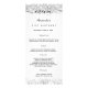 Carta de menú de la fiesta de cumpleaños. Personalice y agregue un nombre, edad, fecha y el menú. Fondo blanco en la parte delantera, decorado con finos destellos purpurinas. Letras de color negro. Atrás: fondo falso plateado que finge.