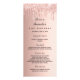 Carta de menú de la fiesta de cumpleaños. Personalice y agregue un nombre, edad, fecha y el menú. Rosa dorado falso fondo metálico, decorado con tonalidades purpurinas, pinturas de goteo. Letras de color negro. Atrás: agrega una foto del chica de cumpleaños, datos divertidos y nombres.