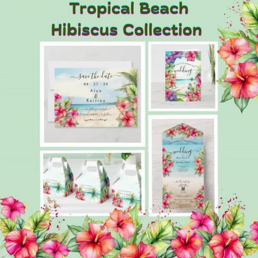 Celebre su paraíso tropical con el menú Boda Tropical Beach Hibiscus. Esta encantadora tarjeta de menú cuenta con una pintoresca escena de playa con encantadoras sombrillas de playa, todas ellas representadas en un vibrante estilo acuático. Las tranquilas aguas azules y la suave orilla de arena le confieren un ambiente relajante, mientras que las vívidas flores rosadas y rojas-naranjas de hibisco le dan un toque de elegancia tropical. Esta tarjeta de menú complementa con gusto a su boda de temática tropical y ofrece una impresionante presentación para su fiesta boda.