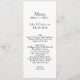 Menú largo y flaco de la tabla del boda hecho en blanco, con los gráficos de una bifurcación, en el top. Personalice todo el texto para adaptarse a su menú de la recepción nupcial. Adición preciosa a su recepción nupcial.
