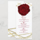 Tarjeta de menú de fiesta elegante floral de líneas rosa roja y dorada. Están disponibles artículos coincidentes en este diseño.