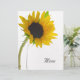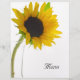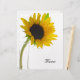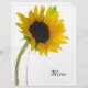 Personalizar el menú bonito girasol amarillo en Boda blanco con los detalles de la comida que se servirán en el almuerzo de verano o en la ducha nupcial, cena en la recepción matrimonial o brunch postboda con la ensalada o primer plato, entrante o segundo y postre o tercer plato. Personalízalo con los nombres de la novia y el novio, la ubicación del lugar y la fecha. En la elegante carta personalizado de boda, florida y con flores, se puede apreciar una fotografía de un florecimiento de girasol en el tallo, en un jarrón de cristal de fondo blanco.