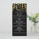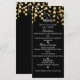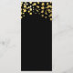 Tarjeta de menú de glamour moderno con puntos de confeti negros y dorados