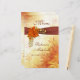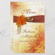 Volante de menú Boda de hojas otoñales rojas y doradas.
