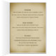 Un vintage, un fondo de papel apenado de la mirada en sombras del beige caliente y cremoso forma la base de esta tarjeta imponente del menú de la recepción nupcial. El scrollwork decorativo de la hoja en un estilo del damasco, sombreado en tonos neutrales de oro termina este diseño completamente adaptable. Otros tamaños/formatos y artículos a juego están disponibles en tienda.
