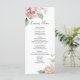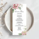 Completa la decoración de tu mesa de recepción con esta tarjeta de menú de boda diseñada en un estilo elegante y simple. Con delicadas ilustraciones de acuarela y suaves acentos florales en rosa y vegetación botánica, esta tarjeta de menú añade un toque delicado y de inspiración en el jardín a tu celebración.