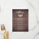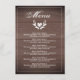 Menú de la cena de la boda en madera marrón rústic