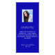 Menú de fiesta de cumpleaños. Personalice y agregue un nombre, edad y menú. Un fondo azul real. Letras de color blanco. Atrás: agrega una foto y datos divertidos sobre el chica de cumpleaños. Eliminar los nombres si no es necesario
