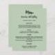 Un fondo verde sabio. Texto negro. Personalice y agregue su nombre, fecha y menú. Puede añadir más texto, fotos en la parte posterior. 1 hoja = 1 borde impreso del menú a borde.