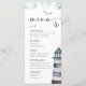 Este menú presenta diseños náuticos de acuarela, la tipografía elegante complementa el diseño perfectamente.