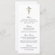 Una carta de primera comunión sencilla y femenina con una cruz de madera adornada con flores en la parte superior del diseño. El diseño elegante de la plantilla de texto de guión y de serif presenta los elementos de menú de forma muy atractiva. Personalice la plantilla de texto con la información del menú.