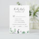 Esta carta rústica de lavanda y eucalipto es perfecta para un boda al aire libre sencillo y elegante. El diseño floral incluye hojas de eucaliptos acuáticas y vegetación con brotes de flores silvestres moradas. Esta tarjeta de respuesta boda le pregunta a los clientes qué comida desean en la recepción.