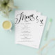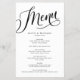 Este diseño de moda presenta un encabezado de guión con flores. Utilice la plantilla para rellenar su información. La función "Personalizar más adelante" se puede utilizar para cambiar el tipo de letra (tamaño, estilo, color) y agregar más líneas de texto, cambiar el diseño o agregar texto al reverso. El papel es de gran peso y ofrece una gran elección para un menú.