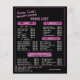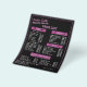 Mejora el plan y la estrategia de marketing para tu negocio con un folleto que tenga una representación visual atractiva y artística. Esta lista de precios de salón de belleza te ayudará a promocionar los servicios que ofreces y cuánto cuestan para que tus clientes puedan elegir exactamente lo que quieren. Esta guía de menú de precios de plantilla personalizable presenta un diseño atractivo que muestra un esquema de colores negro y rosa de moda. Los iconos lindos, gráficos y elementos de texto incorporados a él agregan un atractivo visual y creatividad en la forma en que se muestran los precios y servicios. Personaliza esto agregando tu nombre como propietario, ubicación del salón, sitio web y número de contacto. El identificador de redes sociales con iconos también se incluye para que tus clientes puedan conectarse más contigo.