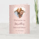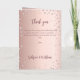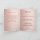 Un fondo degradado de oro rosa falso con diamantes rosados. Texto de bienvenida, foto, programa, menú y una nota de agradecimiento en la parte posterior. Es posible que deba ajustar el texto del menú y los nombres en la parte posterior dependiendo de la cantidad de texto que necesite.