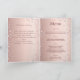 Un fondo degradado de oro rosa falso con diamantes rosados. Texto de bienvenida, foto, programa, menú y una nota de agradecimiento en la parte posterior.