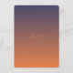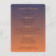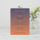 Esta plantilla de menú de puesta de sol crea un ambiente cálido y acogedor por la noche y es perfecta para su recepción o cena. Tiene una hermosa obra de arte naranja y azul con pequeñas estrellas. También hay plantillas para cuatro aperitivos, cuatro platos principales, cuatro postres y varias bebidas listas para la selección de su menú. Estos están en una fuente clara, fácil de leer y encantadora.