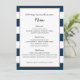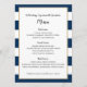 Menú de recepción de boda de rayas azul marino y d