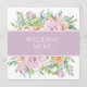 Menú de recepción de Bodas Florales de Verano en un ramo acuarela con suaves tonos morados, blancos, azules y verdes. El texto frontal incluye: Menú Boda. El texto inverso incluye: Las selecciones de Entre y Manu del Apetizador. Para personalizar, simplemente inserte sus selecciones de menú en nuestra plantilla sencilla, reemplazando el texto de ejemplo. Asegúrese de ver toda la colección de estacionales de Boda floral de las flores de verano para tarjetas y accesorios a juego.
