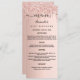 Una carta elegante y glamurosa. Personalice y agregue su nombre, fecha y menú. fondo dorado Rosa, decorado con goteos en purpurina de imitación de oro rosa, pinturas que gotean.