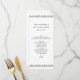 Carta boda larga y delgada en blanco con elegantes gráficos de bandas de joyas en tonos plateados, en la parte superior e inferior del menú. Personaliza todo el texto para que se adapte a tu menú de recepción de bodas.