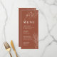 Este menú se caracteriza por el estilo boho, el arte floral, la terracota y los colores beige, con una mezcla de diferentes estilos de fuentes, a menudo de diferentes tamaños, para crear un aspecto único y ecléctico que hace que estos menús tengan una estética natural.