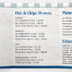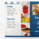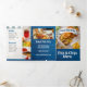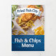 Una carta de tres veces a la carta del restaurante de fish and chips es perfecta para los restaurantes que buscan mostrar sus ofertas con estilo, ya sea para comida o comida para llevar. Con imágenes de pescado y patatas fritas que se pueden intercambiar fácilmente para adaptarse a la cocina, este diseño combina la disposición práctica con el atractivo estético. El fondo incluye sutiles toques de textura de madera azul, lo que le da a la carta un encanto rústico y costero que se complementa con temas de marisco y ambiente informal. Completamente editable y organizado profesionalmente, es una solución versátil para promocionar sus platos en un formato llamativo y fácil de leer.