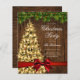 Elegante invitación de fiesta de Navidades con programa y menú con Árbol de Navidad Rústico.