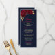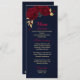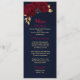 bellas flores borgoñas y hojas de oro elegante menú boda azul marino. Los detalles del purpurina se simulan