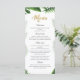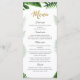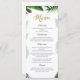 Menú para cualquier celebración fiesta con texto purpurina dorado y hojas tropicales.