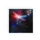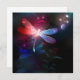 Flor, vuelo, libélula roja, con alas transparentes y detalladas sobre fondo oscuro, nocturno y luminoso con plantas tropicales y luciérnagas. Lluvia roja.