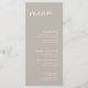 Haga de su ducha de novia un asunto de moda con el Minimalista menú Taupe Script Bridal Shower, que incluye un sofisticado y moderno tipo de letra de guión que exuda elegancia subestimada. A los clientes les encantará la sencillez de moda de este menú. Su estilo minimalista impide que parezca confuso o demasiado confuso. El color de las tejas le da un toque sutil a la personalidad. Es el menú perfecto para la novia moderna que quiere que su ducha se sienta fresca y contemporánea.