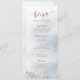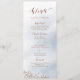 Elegante y moderno menú de caligrafía con un diseño floral rústico de color marrón cobre sobre un fondo de agua azul y serena, ideal para boda rústico moderno, boda de primavera o boda de invierno. Vea todas las piezas coincidentes de la colección a continuación.