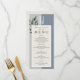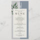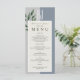 Sencillo, moderno, minimalista, botánico, elegante menú de boda verde sabio y azul polvoriento con monograma gigante - iniciales en la parte superior, verde y moderno guión de caligrafía.