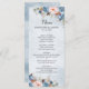 Menú Dusty Blue Peach Rubor Boda de flores botánicas