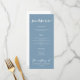 Este polvoriento menú de cena azul ofrece tranquilidad a un boda costero de verano junto al mar. Personalice esta decoración azul claro con una elegante tipografía minimalista en blanco para que coincida con su serena combinación de colores de novia.
