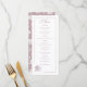 This elegant dusty pink wedding menu features a clean white background, a delicate line art rose in the corner, and a graceful calligraphy script title. Its minimalist layout beautifully highlights your reception dishes, making it perfect for showcasing wedding dinner courses, reception meal choices, and thoughtfully planned catering selections. The subtle floral illustration adds a romantic touch while keeping the focus on the food, creating a stylish and modern piece for any celebration. Ideal for couples who appreciate soft botanical details and a cohesive dusty pink wedding menu aesthetic, this design elevates the presentation of your carefully curated wedding meal.
